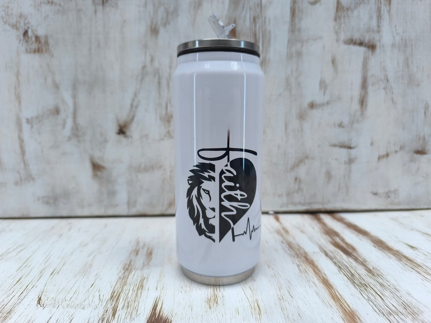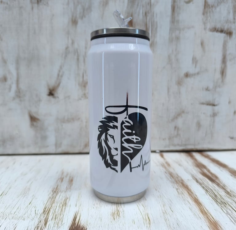 Botella tipo lata de 300ml sublimada con diseño a elección, empacada en caja de cartón kraft a medida, con cinta decorativa y tarjeta personalizada de acuerdo a la ocación.