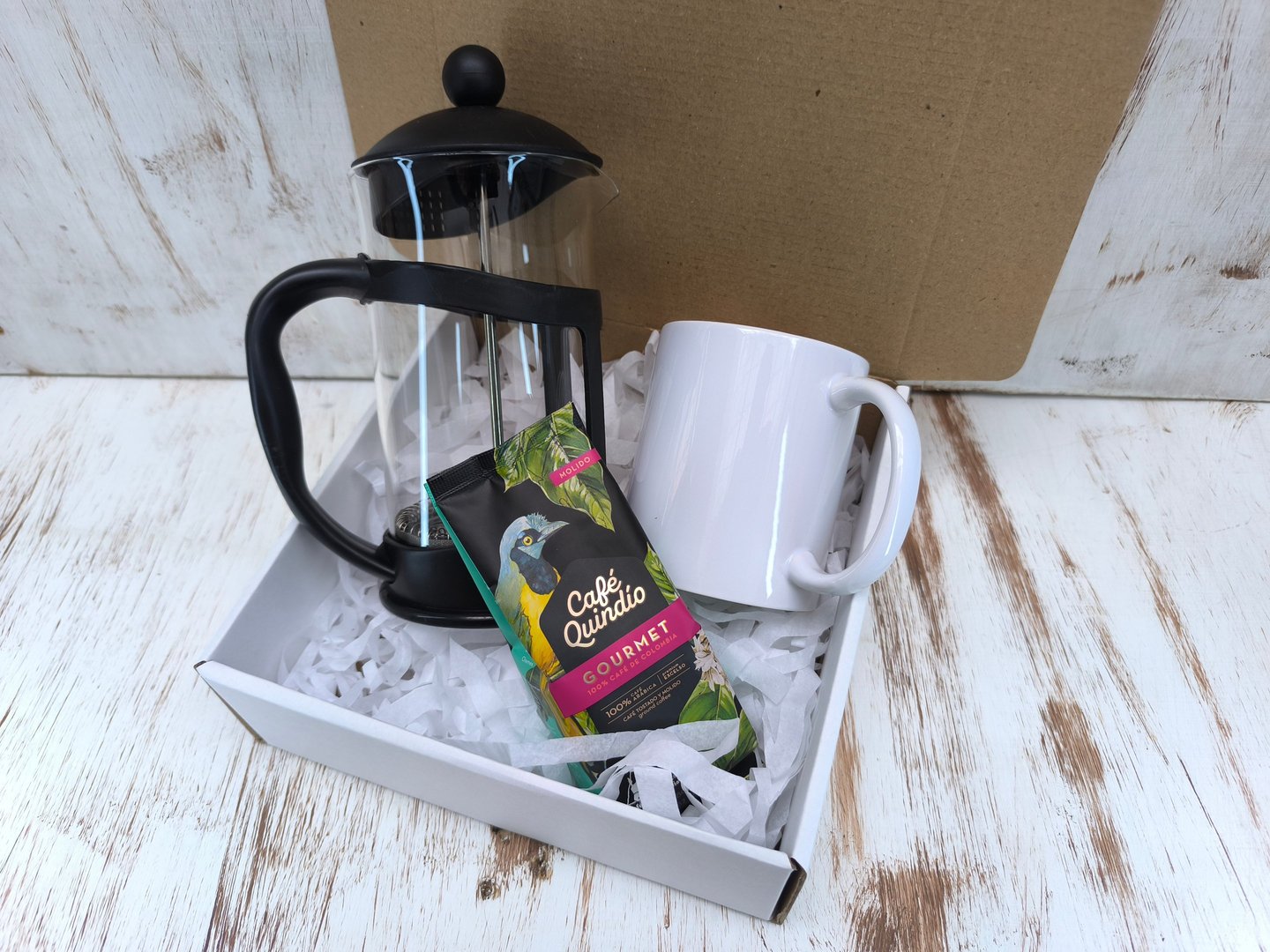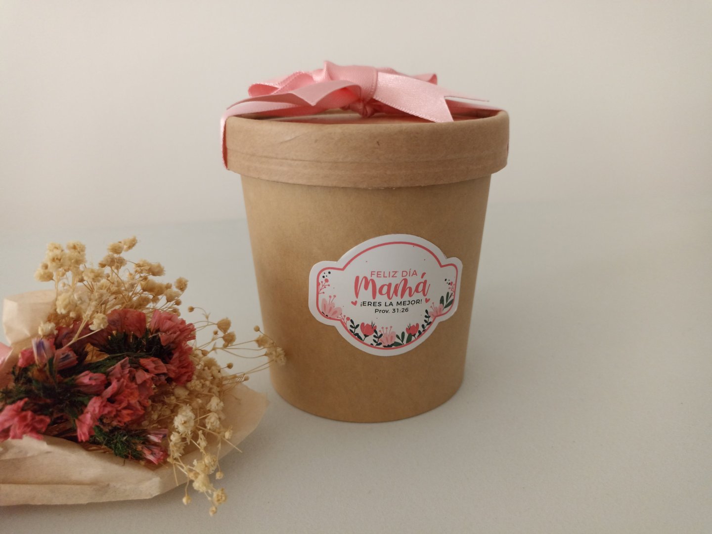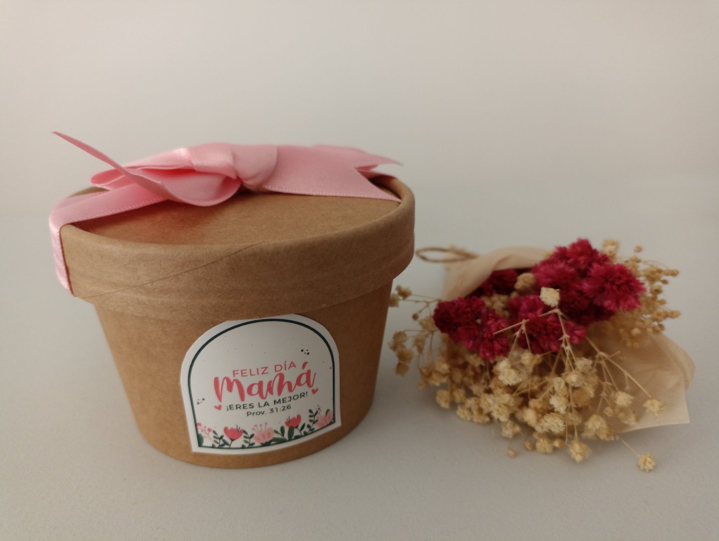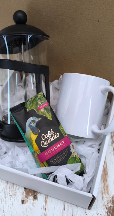Caja de Regalo en cartón kraft con cinta decorativa que contiene: