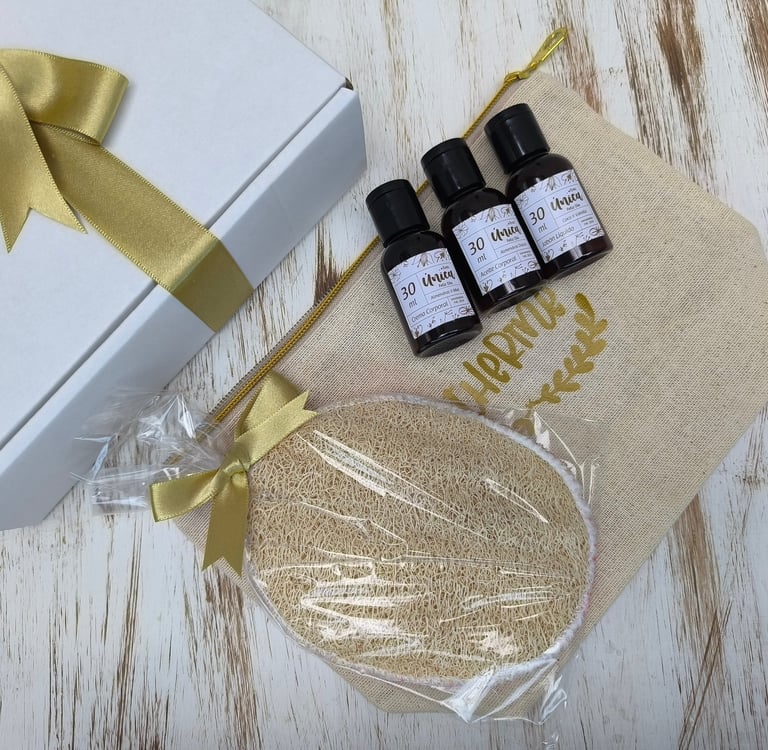 Bolsa de Regalo en tela ecológica o Caja de cartón Kraft que contiene: